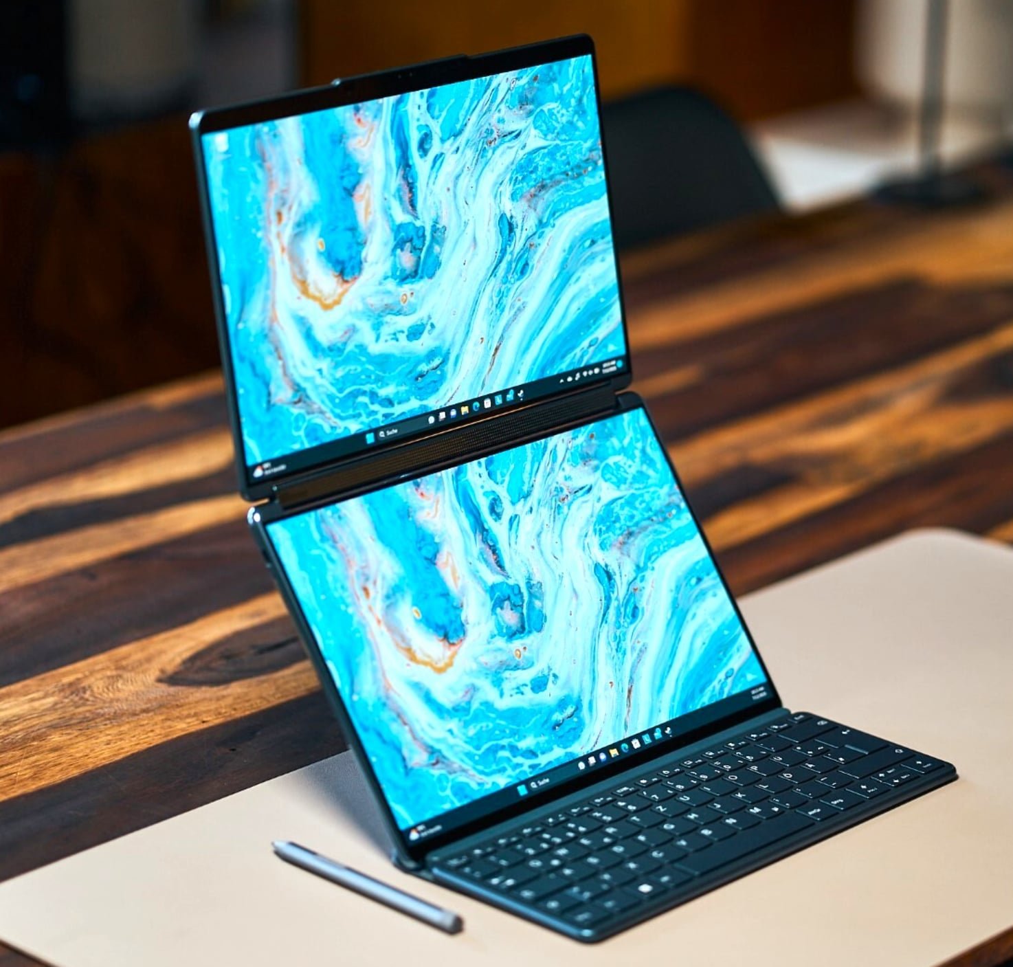 Premium dual-screen laptop that replaces the keyboard with a second touchscreen. Both screens can be used simultaneously for multitasking or drawing.